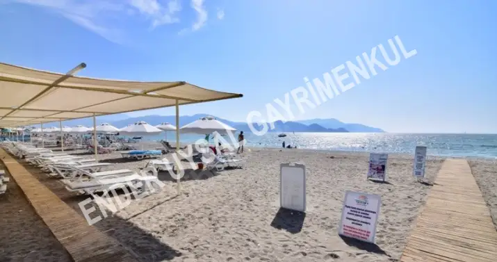 Fethiye Çalış Plajı’nın en prestijli sitelerinden Sunset Beach Club’ta, denize sıfır konumda, full eşyalı 2+1 dubleks dairemiz kiralıktır.